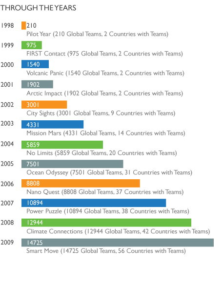 Starting from the pilot tournament in 1998 in which 210 teams from 2 countries participated, FLL has grown steadily across the globe, and is now widely acknowledged as one of the best competitions to introduce kids to science and technology and motivate them.