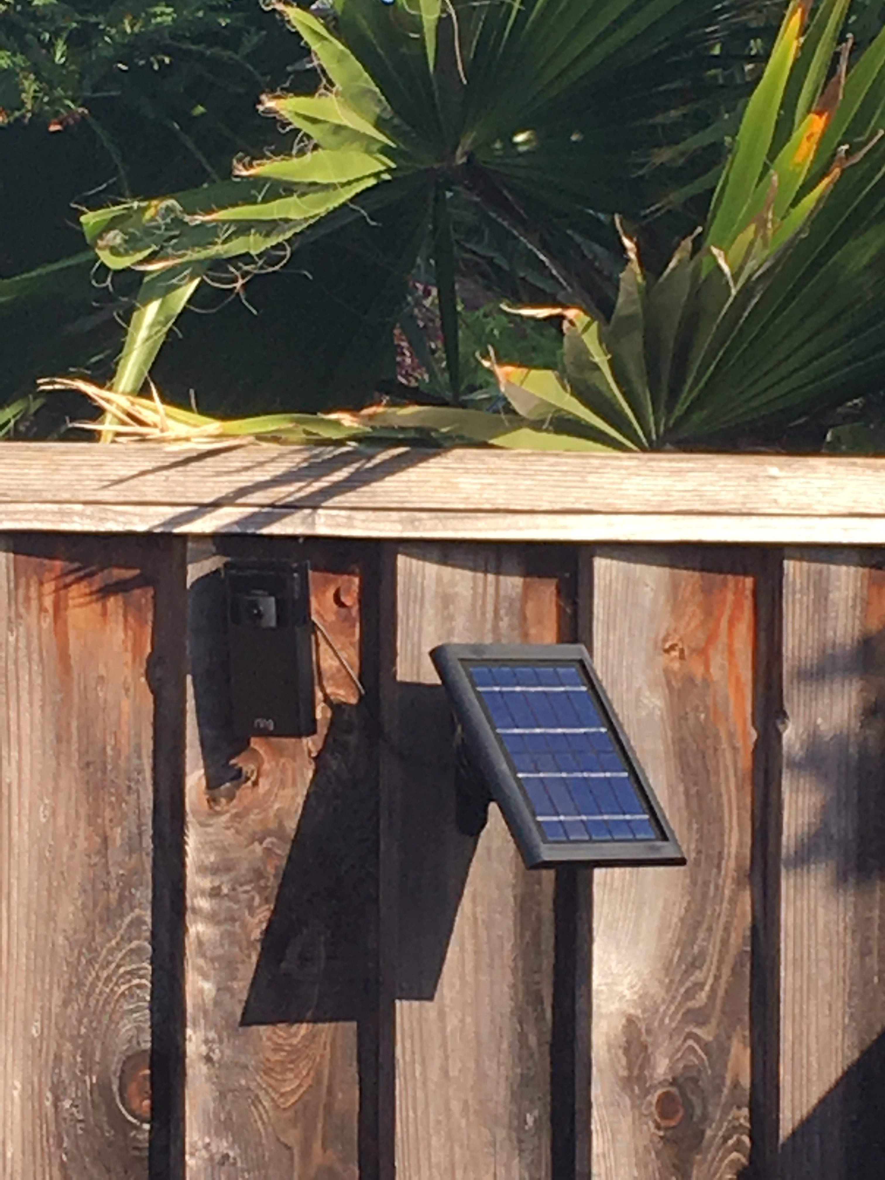 Ring Stick-up Camera and Solar Panel mounted on a fence